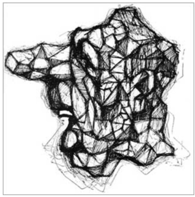 Une simple empreinte digitale sur laquelle on peut reconnaître à gros traits le visage de Trump grâce à sa bouche et la teinte de son visage