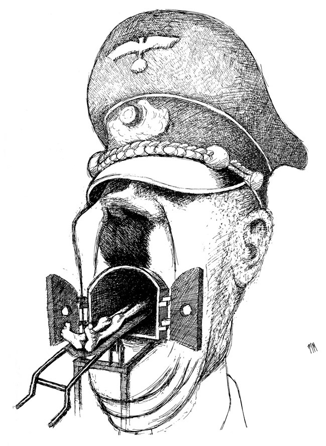 Extraordinaire caricature d’Hitler qui selon mes recherches a été déssinée en 1937 par Tim. Elle montre l’horreur absolue du personnage..