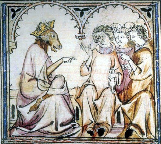 Caricature de Philippe IV Le Bel par Gervais du Bus dans le Roman de Fauvel (1310-1314)
