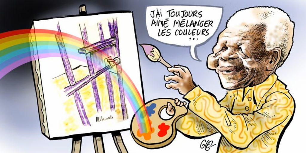 Caricature de Nelson Mandela par Damien Glez qui a été élu président de l’Afrique du Sud en 1991