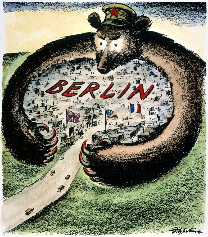 Le blocus de Berlin (24 juin 1948 – 12 mai 1949) fut une tentative des Soviétiques d’asphyxier Berlin-Ouest en bloquant tous les accès terrestres, contournée par les Alliés grâce à un gigantesque pont aérien qui ravitailla la ville pendant près d’un an.