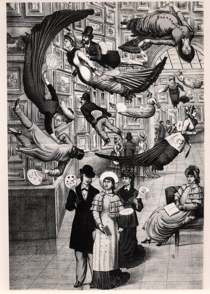 19 juin 1886 violente critique contre l’adoption le lendemain du projet de Fulgence Bienvenüe. Les débats avaient commencé en 1845, avec des oppositions farouches pour une ouverture de la première ligne la 1 le 19 juillet 1900. Ici on reconnait tout de suite le style d’Albert Robida le précurseurs des genres science-fiction, anticipation et fantastique.