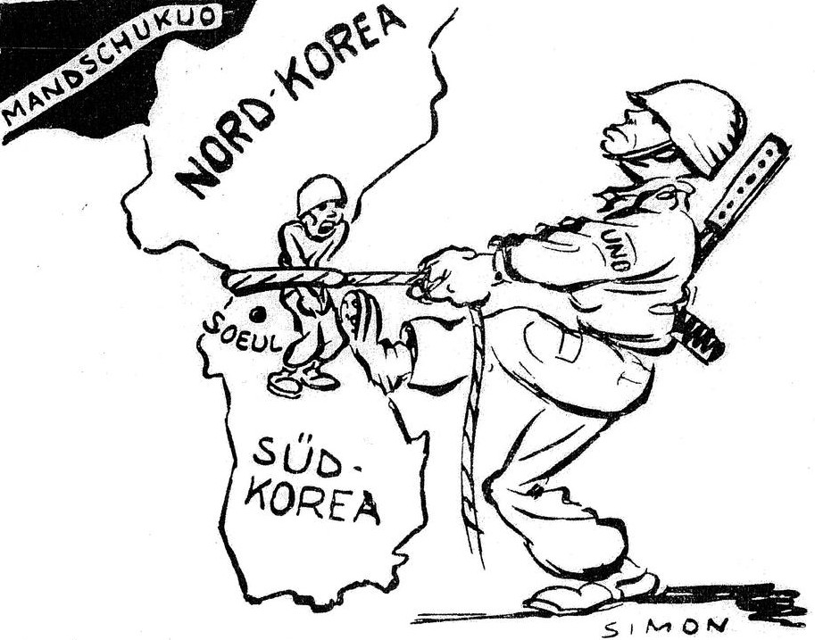 Simon illustre au début de la guerre de Corée (25 juin 1950 au 27 juillet 1953) dans le quotidien socialiste luxembourgeois Tageblatt la question du 38ième parallèle, symbole de la séparation des deux Corées.