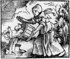 Jeter le bébé avec l’eau du bain est une expression qui apparaît dans la littérature allemande en 1512 sous la forme « Das Kind mit dem Bad ausschütten ». Ici une gravure belge