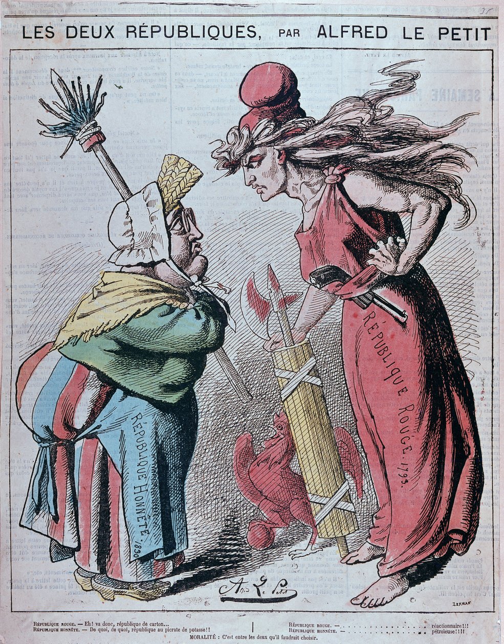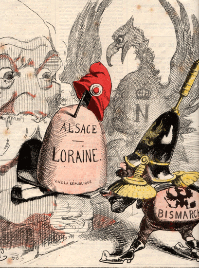 Le 10 mai 1871, le traité de Francfort qui met fin à la guerre entre la France et les États allemands prévoit la cession de l’Alsace-Lorraine à l’Empire allemand, récemment formé. caricature d’Alfred Le Petit aussi connu sous les pseudonymes d’Alfred Le Grand, Caporal ou Zut. Il fonde Tam Tam (1867-1868), La Charge et dessine pour L’Éclipse, Le grelot, Le Charivari, Le Pétard, Lyon Républicain, Les Contemporains, le Rire, Etc