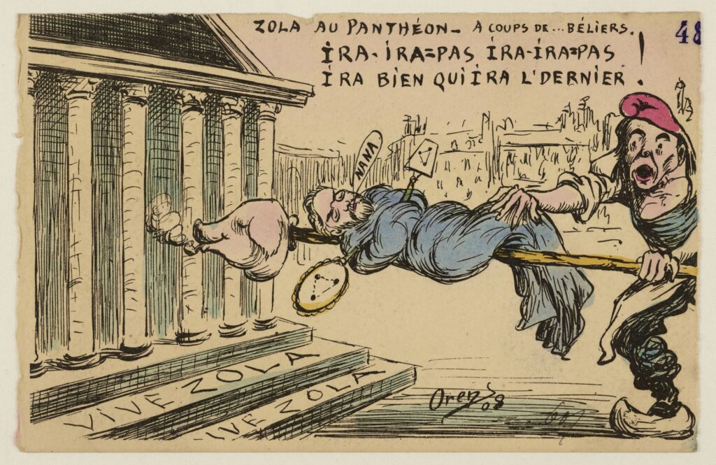 4 juin 1908: les cendres d’Émile Zola ont été solennellement inhumées dans la crypte du Panthéon. Caricature d’Orens Denizard