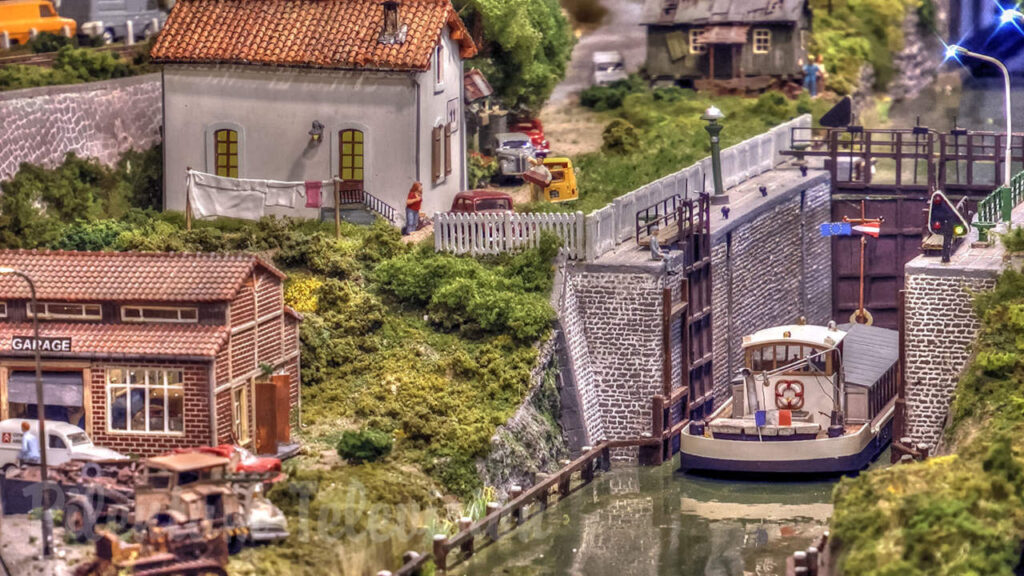 Un nouveau réseau ferroviaire miniature français, fait revivre le bon vieux temps dans les années 1960 d’une petite ville dont la gare était située au bord d’un canal.