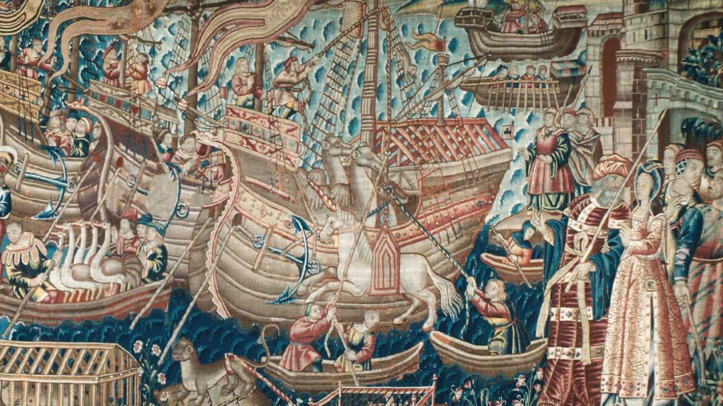 « L’arrivée de Vasco de Gama en Inde » – (Tenture des Indes, XVIe siècle)