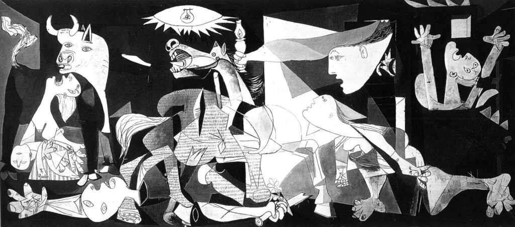 L’artiste ne montre plus, il questionne. L’œuvre ne donne plus de réponses, elle trouble. S’il n’y avait qu’un seul tableau pour illustrer le XX° Siècle ce serait Guernica de Picasso.